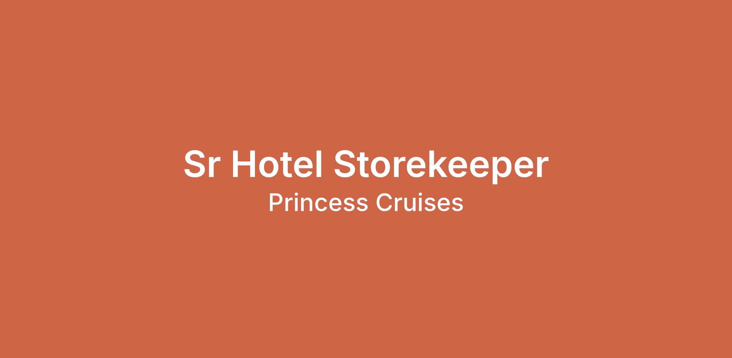 - The Sr Hotel Storekeeper is a key role responsible for maintaining and managing all hotel and uniform stores on board, ensuring smooth and efficient inventory control and support to our operational departments.