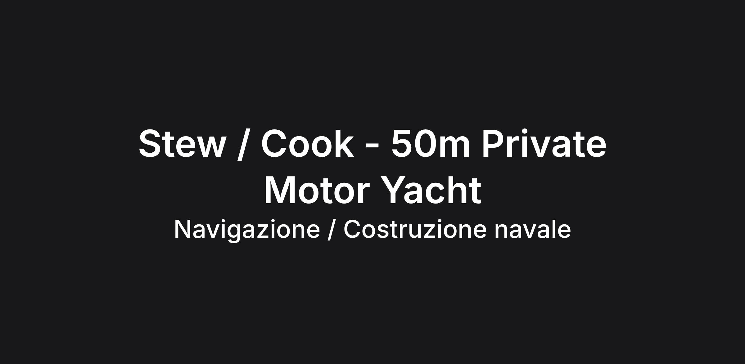 Stew / Cook - 50m Private Motor Yacht