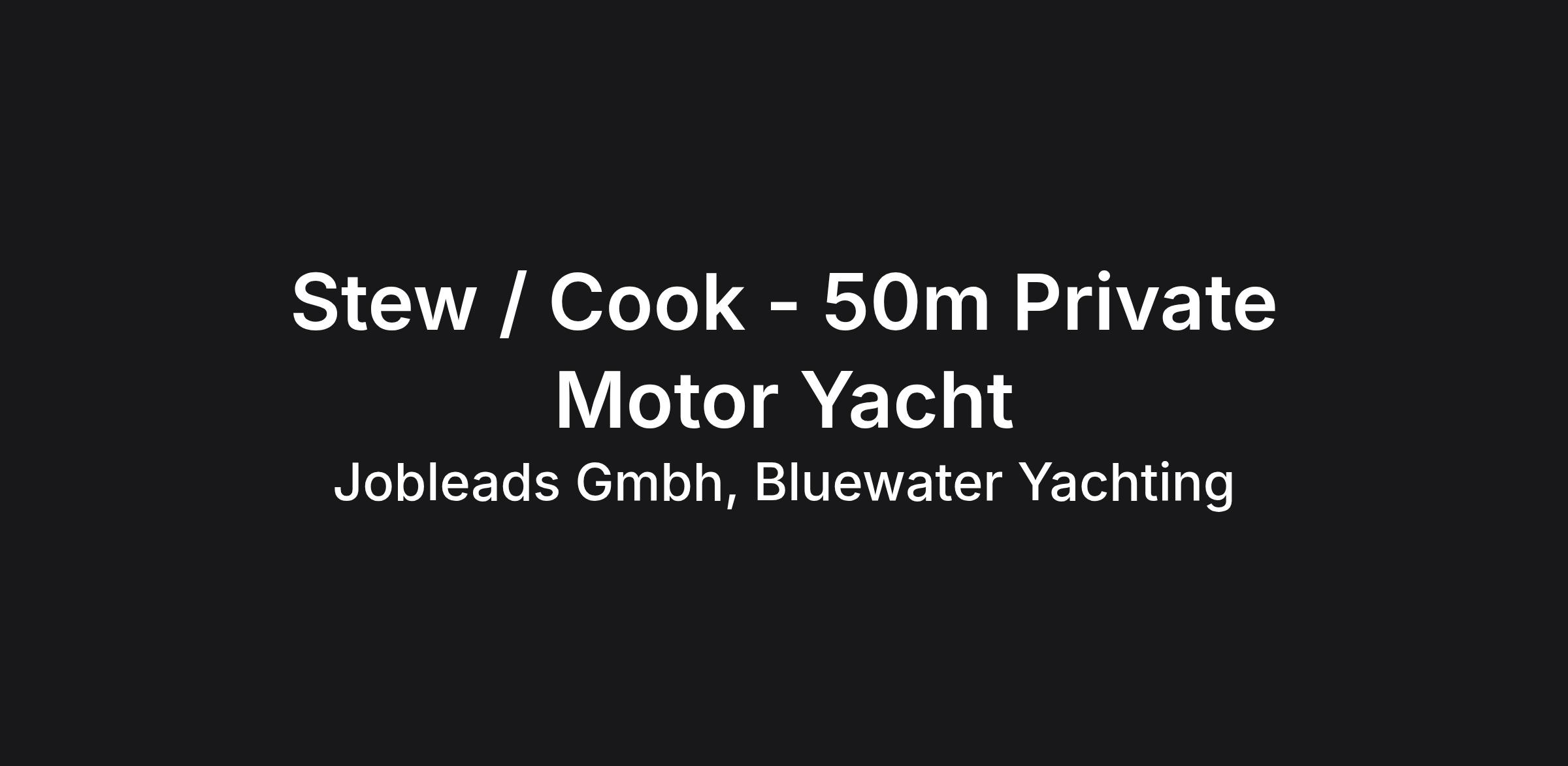 Stew / Cook - 50m Private Motor Yacht