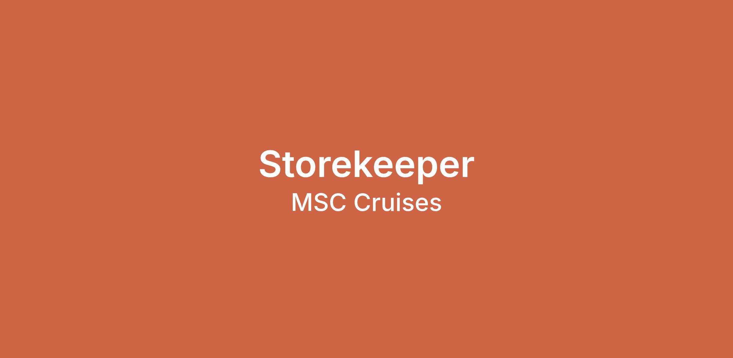 The Storekeeper receives and stores all goods and assists the Provision Master in supervising and monitoring stock inventory and provisions.