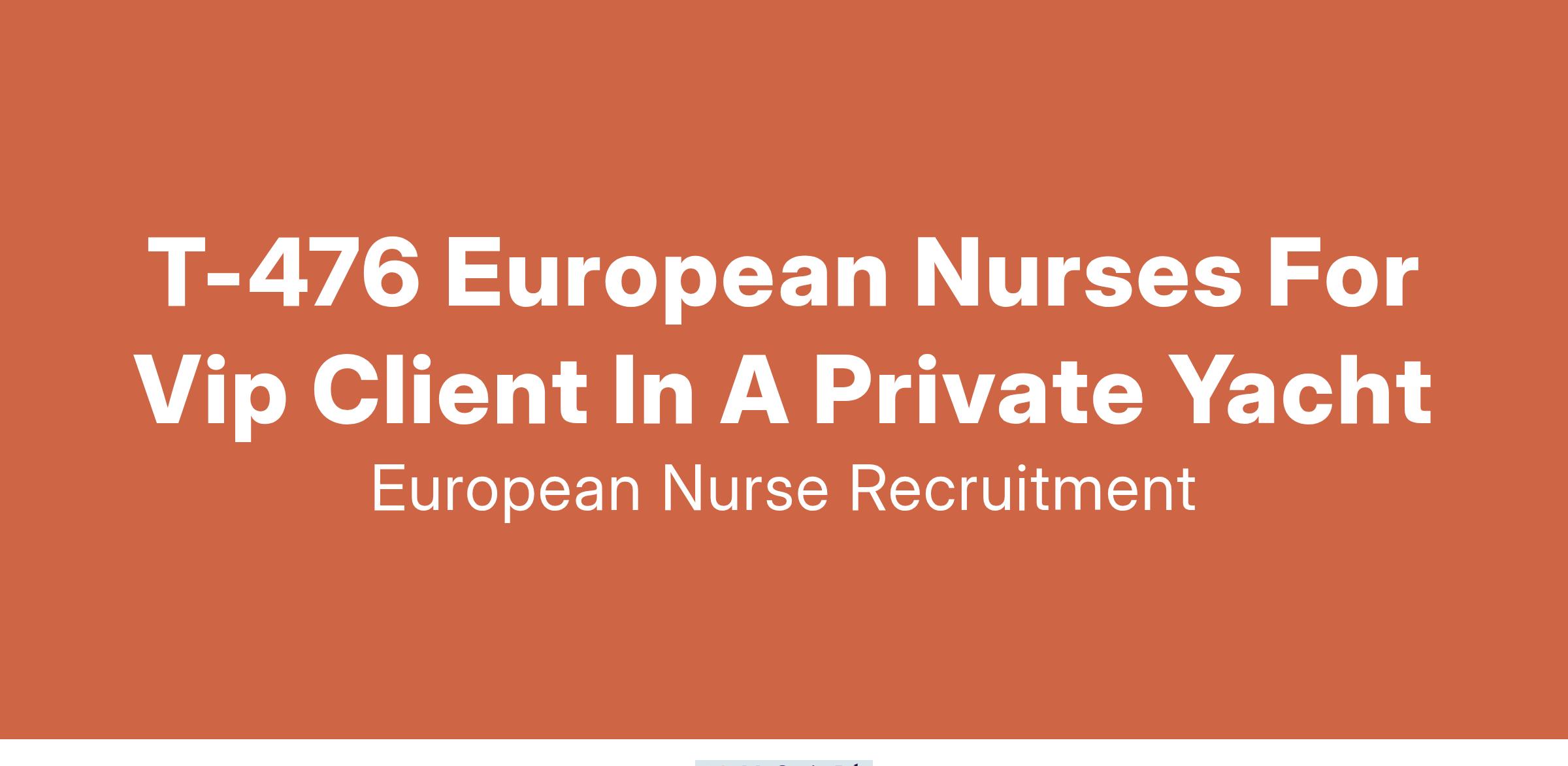 We are seeking European Nurses to provide premium healthcare for a VIP client traveling internationally aboard a luxury private yacht.