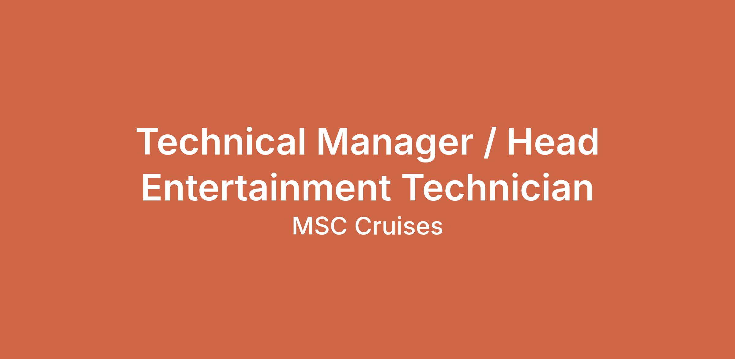 As the Technical Manager / Head Entertainment Technician, you will play a pivotal role in ensuring the seamless execution of our onboard entertainment and activities. Your primary responsibility will be to assist the Cruise Director in technical planning, supervise technical operations, and lead a team of Entertainment Technicians.