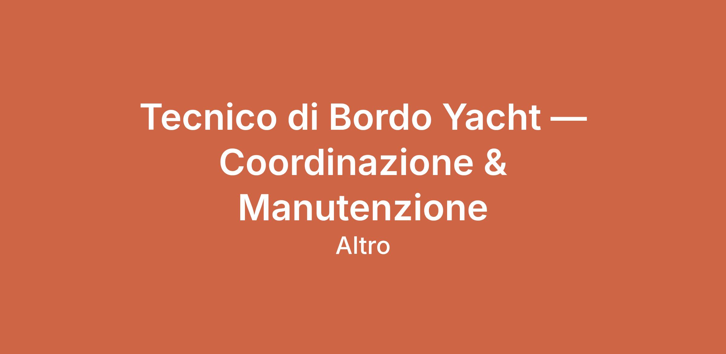 Tecnico di Bordo Yacht — Coordinazione & Manutenzione