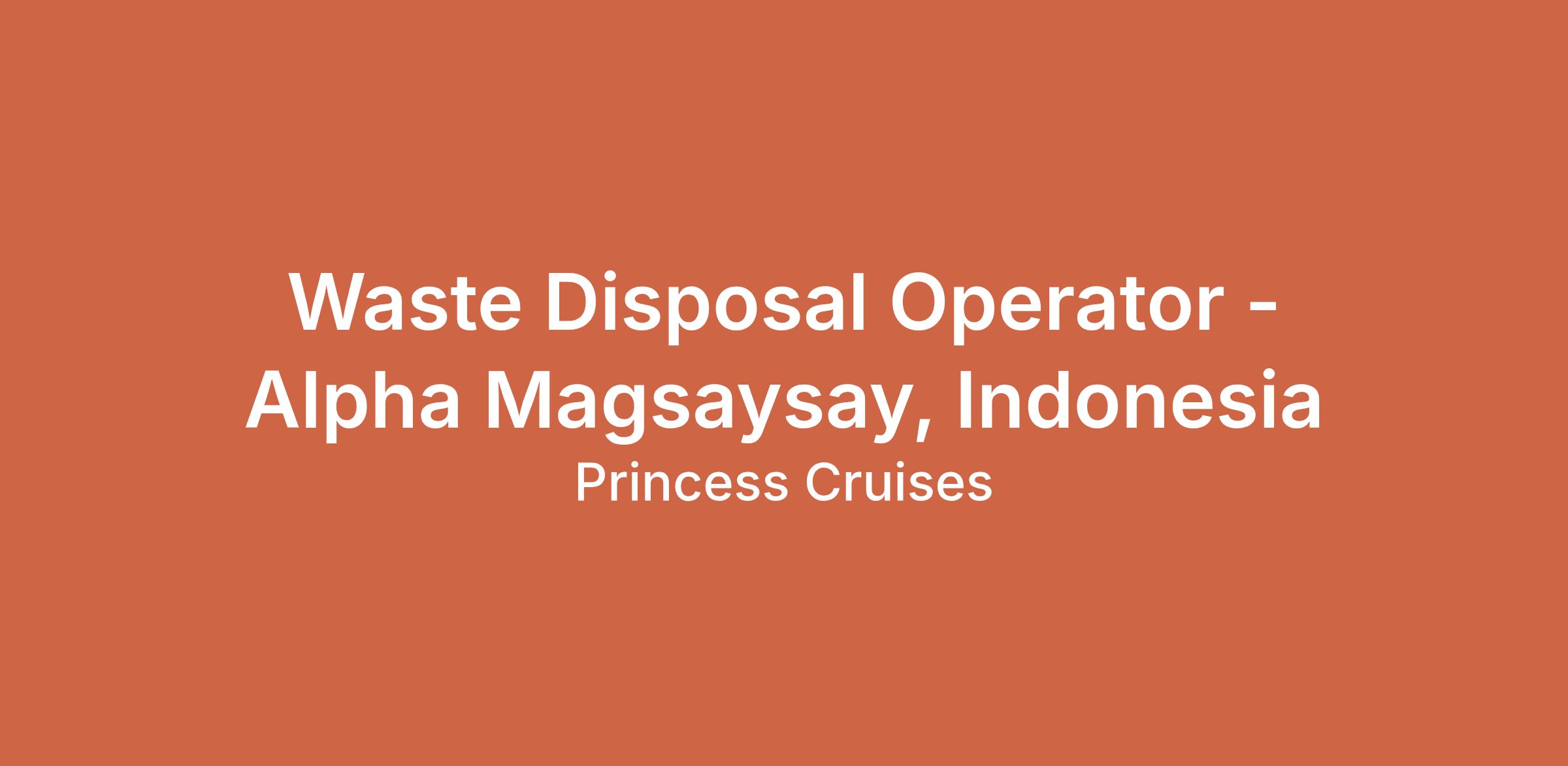 Waste Disposal Operator - Alpha Magsaysay, Indonesia