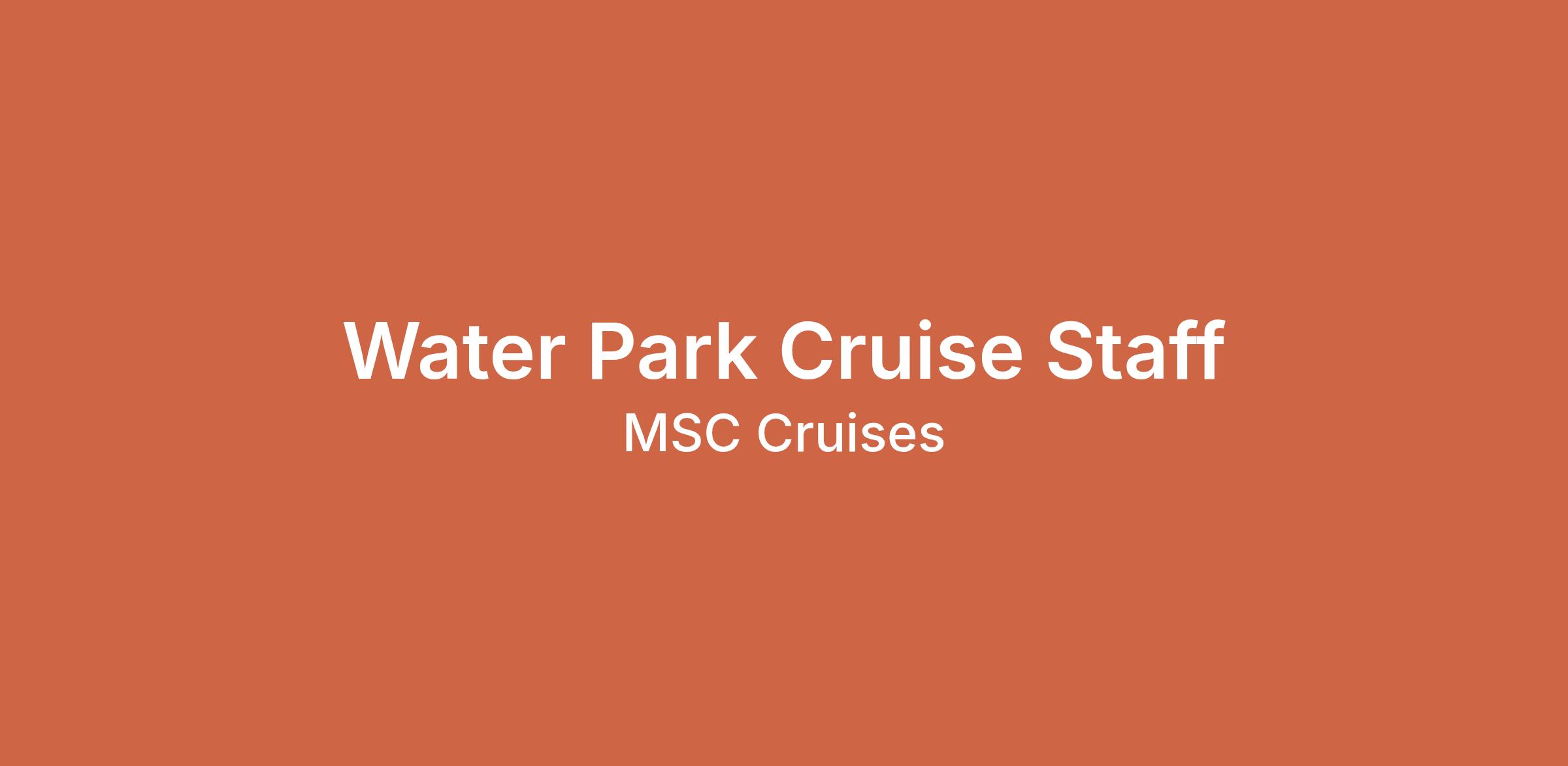 At MSC, our mission is to provide an unforgettable vacation experience for guests of all ages. As a Water Park Cruise Staff member, you are a vital part of this mission. Your purpose is to ensure that guests have a fun, safe, and enjoyable time at our onboard water parks. You will be responsible for overseeing activities in the water park area, ensuring that every guest, from children to adults, enjoys the attractions in a secure and friendly environment.