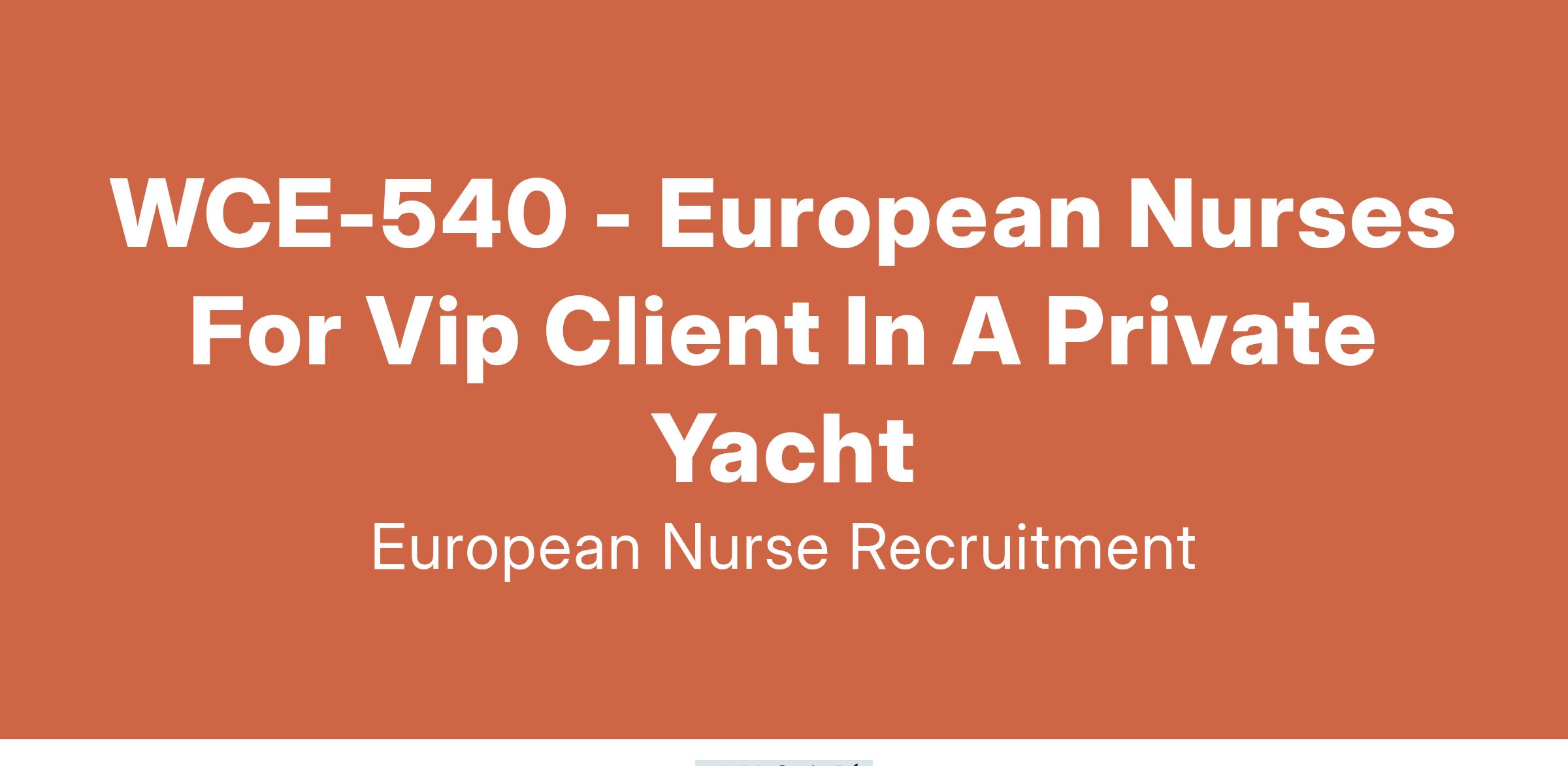 We are seeking European Nurses to provide premium healthcare for a VIP client traveling internationally aboard a luxury private yacht.