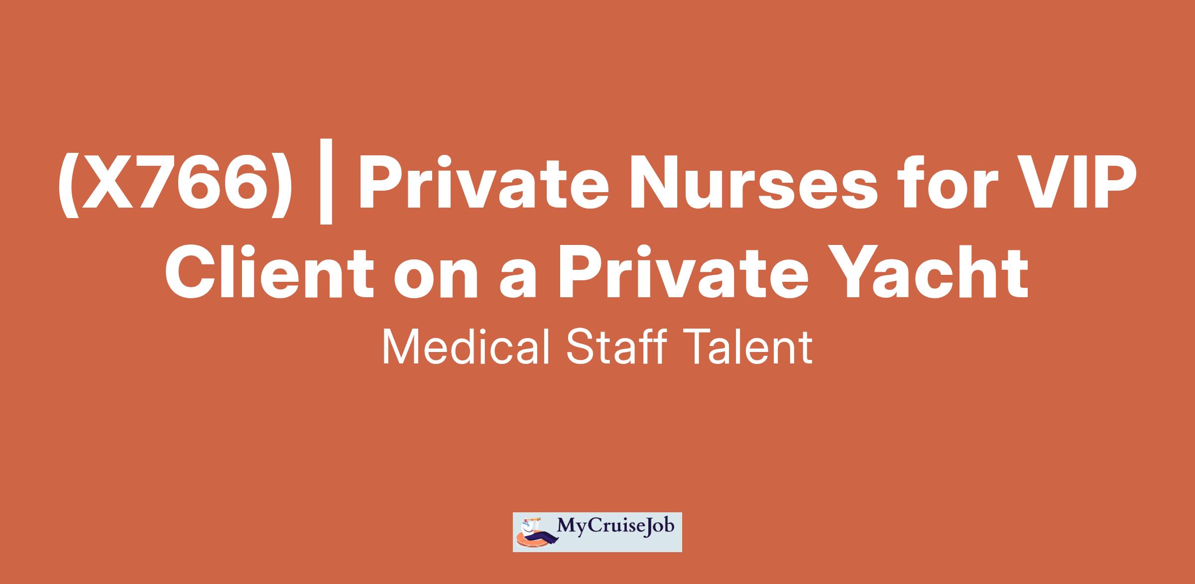 We are seeking Private Nurses to provide premium healthcare for a VIP client traveling internationally aboard a luxury private yacht.
