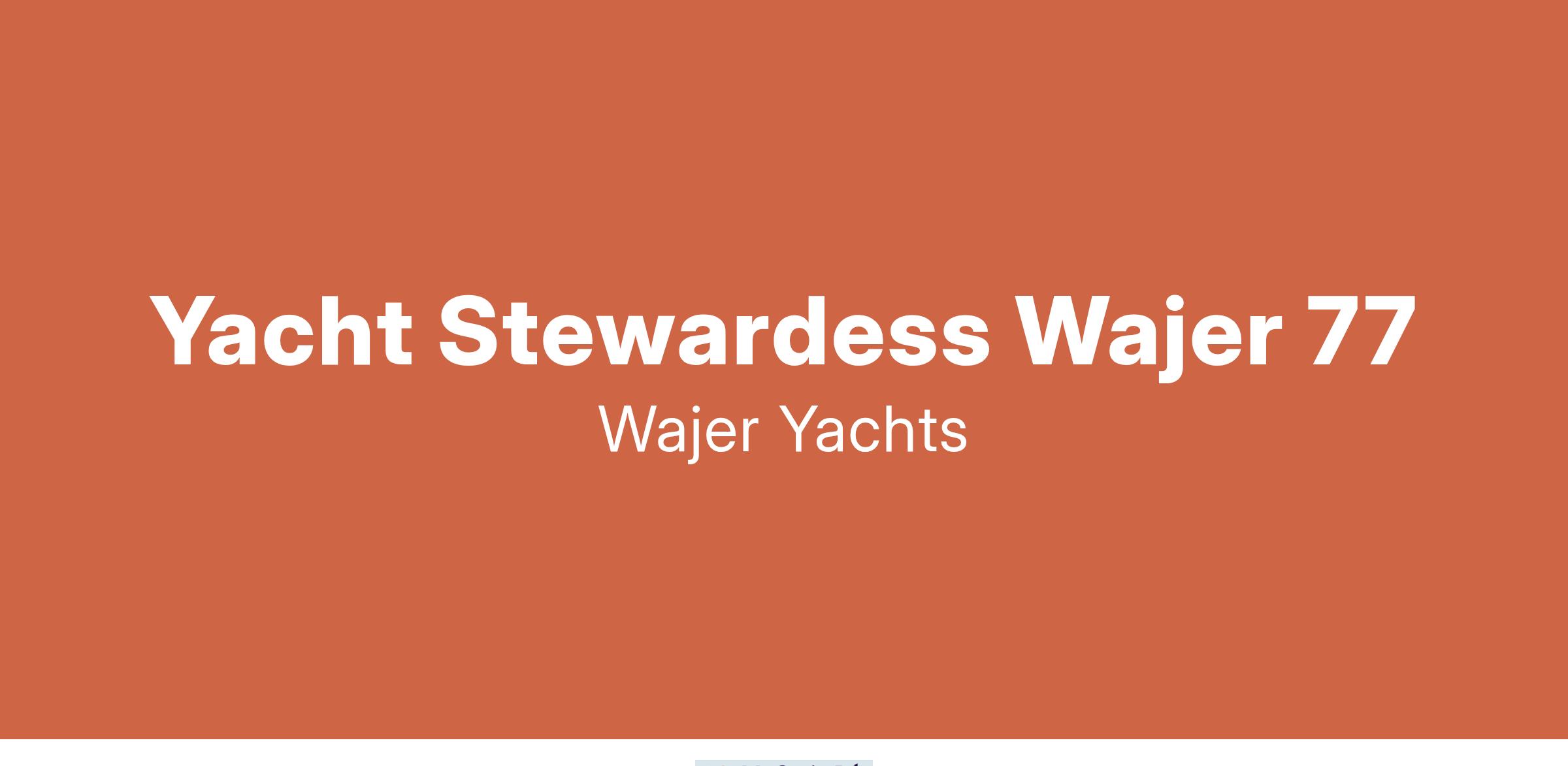 Werken aan boord van één van onze Wajer 77's! Samen met de vaste Captain ben je volledig verantwoordelijk voor het reilen en zeilen van alles rondom de aan jouw toegewezen Wajer 77. Voor jou betekent dit o.a. het schoonmaken en schoonhouden van het jacht (interieur en exterieur), helpen met aanleggen in de havens, zorgen voor voldoende inventaris en alle andere zaken waarin de Captain ondersteuning nodig heeft. Daarnaast ben je altijd bezig met het volledig ontzorgen van de klant, voorzie je ze van een hapje en drankje, maak je ontbijt en lunch voor ze klaar, maak je de bedden op en leg je de toys (bijv. sup of seabob) klaar als ze daar gebruik van willen maken. Hospitality staat bij jou altijd bovenaan.