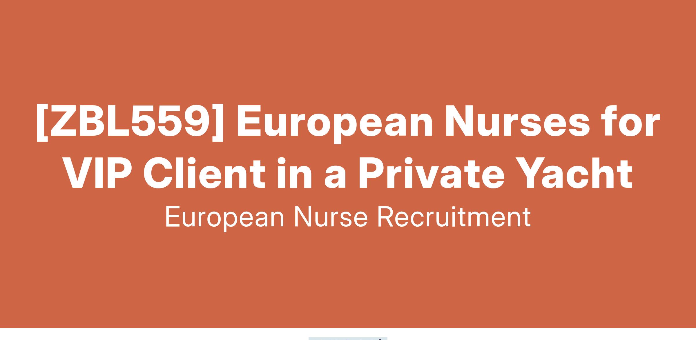 We are seeking European Nurses to provide premium healthcare for a VIP client traveling internationally aboard a luxury private yacht.