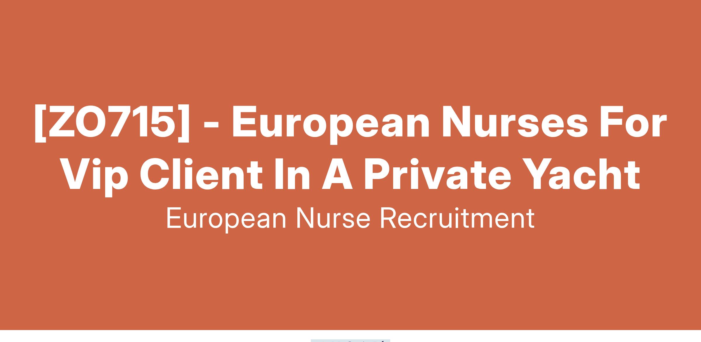 We are seeking European Nurses to provide premium healthcare for a VIP client traveling internationally aboard a luxury private yacht. This exclusive role offers a unique chance to combine your professional expertise with the excitement of exploring stunning destinations, always following the warmth and sunshine of the season. You could be traveling to breathtaking locations such as: